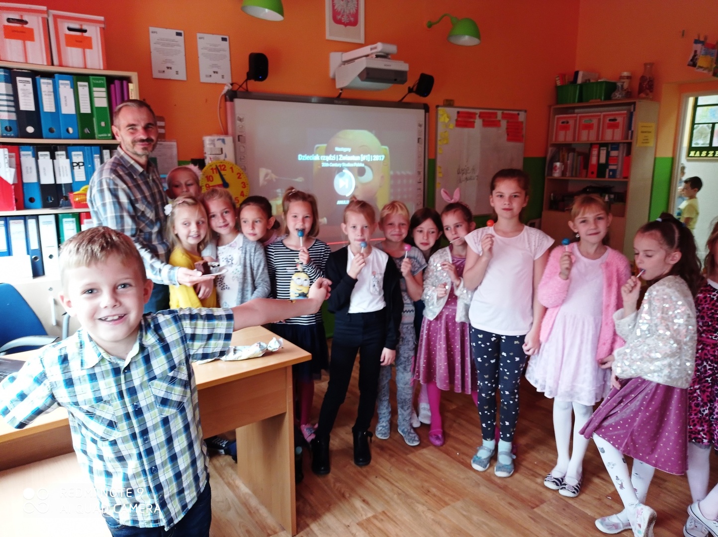 Były życzenia, upominki, śpiew, taniec, zabawa, pokaz multimedialny i słodki poczęstunek. Wszystkie wyżej wymienione atrakcje, zorganizowały dziewczyny z klasy II dla swoich kolegów z okazji Dnia Chłopaka.